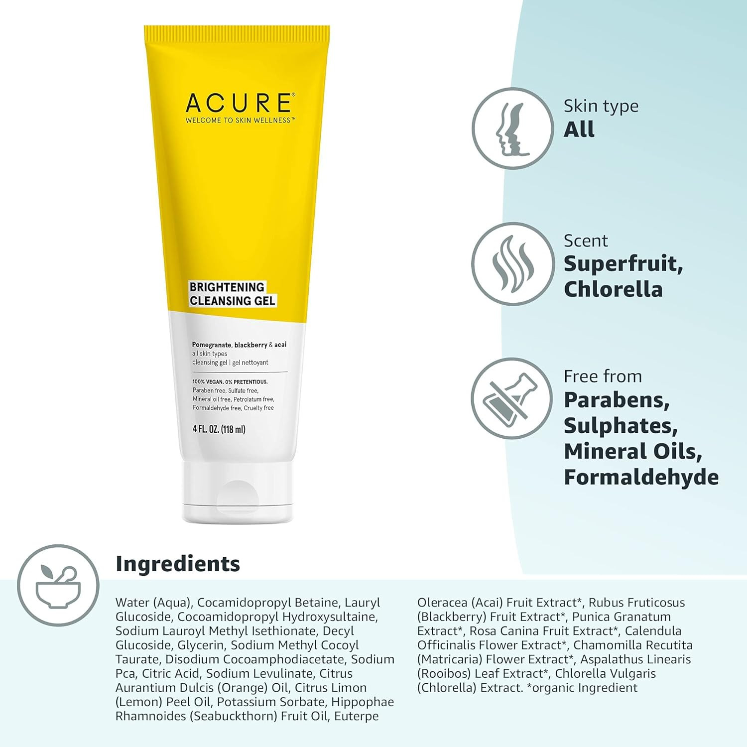 Commencez votre routine beauté avec le gel nettoyant éclaircissant ACURE, une formule douce et rafraîchissante qui nettoie en profondeur sans dessécher la peau.
