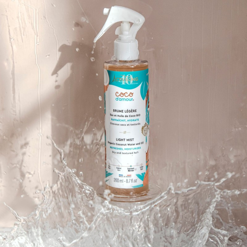 Apportez une touche de fraîcheur tropicale à vos cheveux avec la Brume Légère de Coco d’Amour BIO d’Activilong.