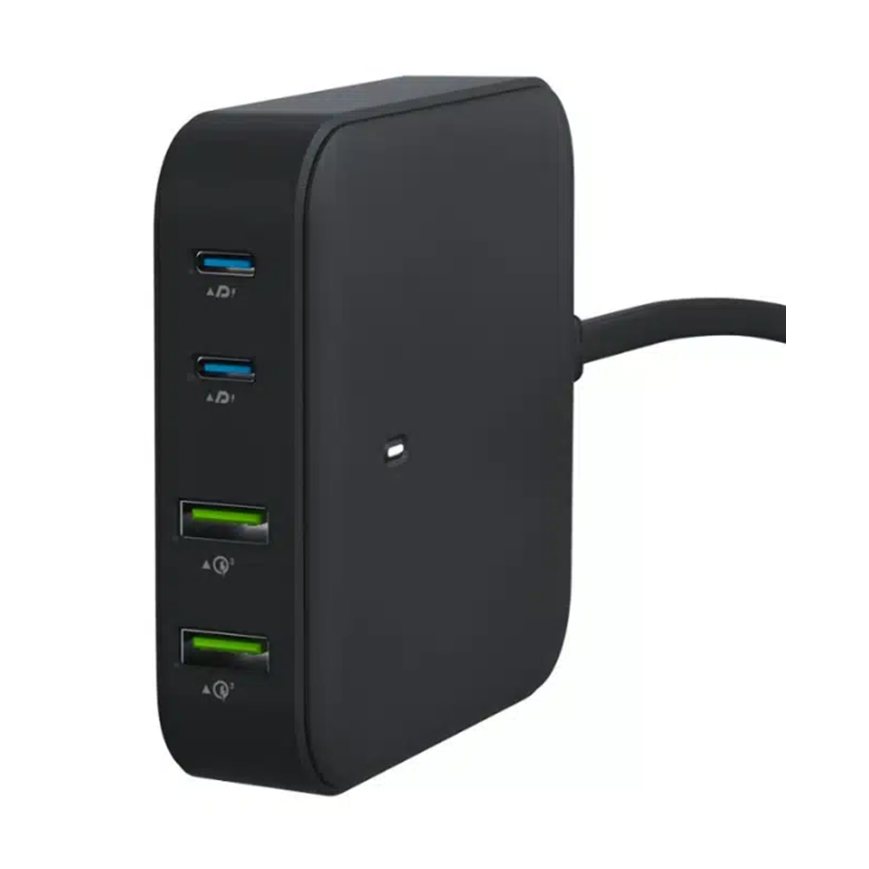 Le Goui GAN 100W est un chargeur de bureau ultra-puissant et compact, conçu avec la technologie GaN (nitrure de gallium) pour une efficacité supérieure et un encombrement réduit. Il est idéal pour alimenter rapidement les ordinateurs portables, tablettes, smartphones et autres appareils compatibles USB-C et USB-A.