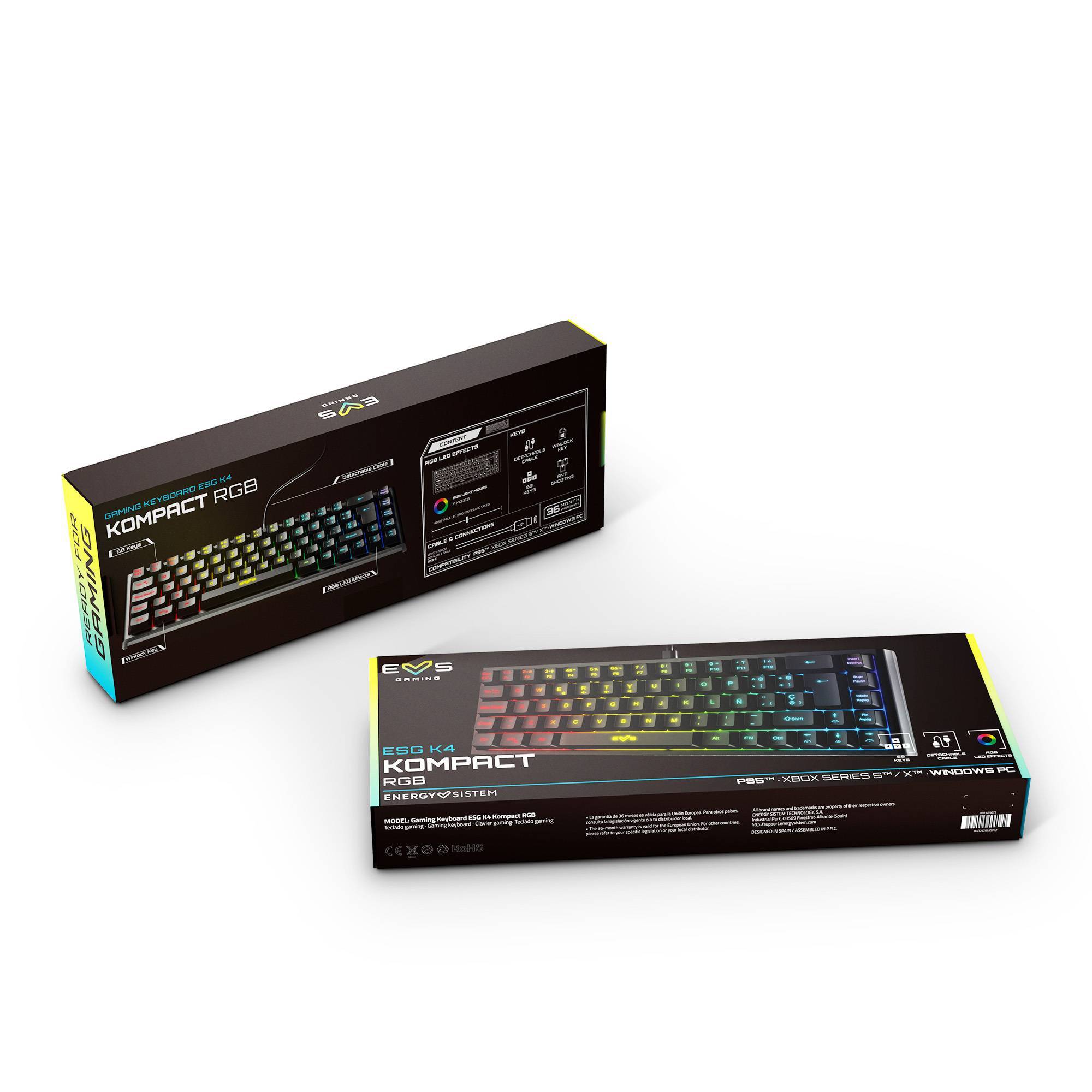 Le clavier gamer ESG K4 Kompact d’Energy Sistem est conçu pour les joueurs qui recherchent efficacité et design compact. Son format sans pavé numérique libère de l’espace sur le bureau tout en maintenant toutes les fonctionnalités essentielles pour le jeu. Avec son rétroéclairage RGB dynamique et ses touches silencieuses, il offre une expérience immersive, confortable et réactive pour toutes vos sessions gaming.