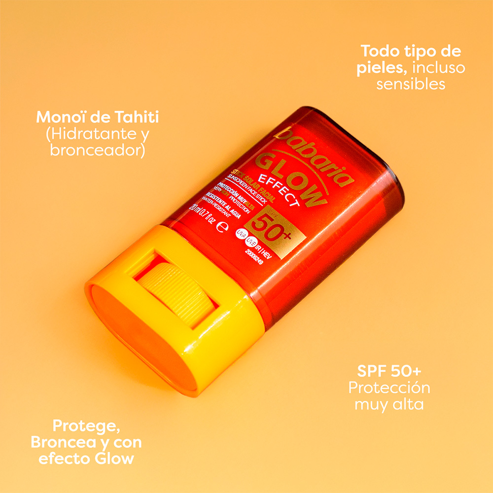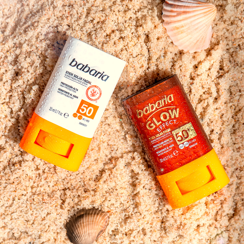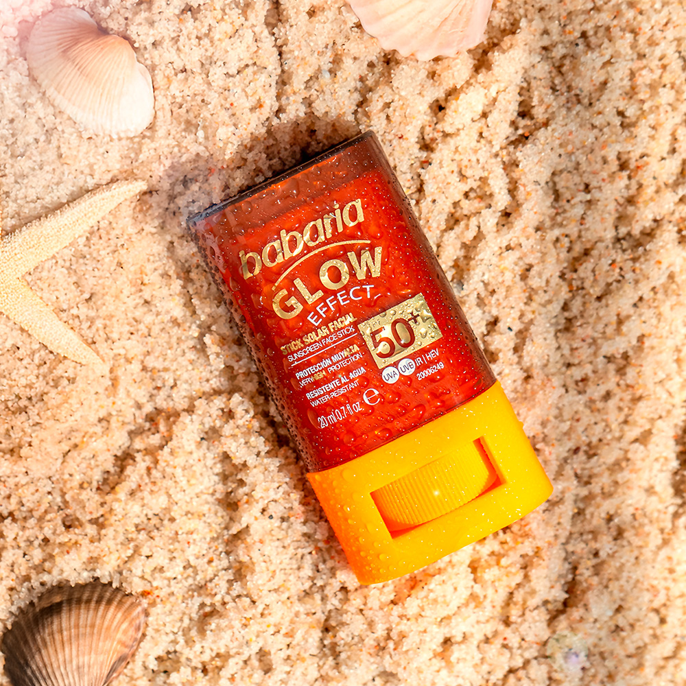 Protégez votre peau tout en lui donnant un éclat naturel et lumineux grâce au Stick Glow Solaire SPF 50+ de BABARIA.