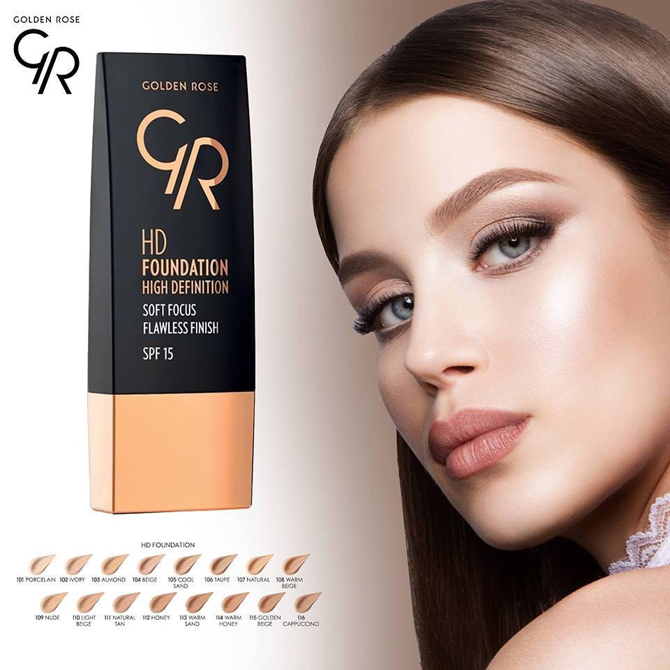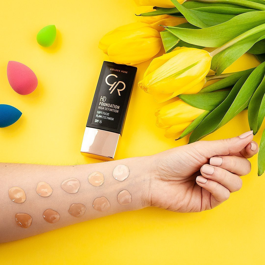 • Astuce beauté : A vous le teint éclatant grâce au fond de teint HD de Golden rose. Sa texture onctueuse hydrate, corrige et couvre de façon naturelle votre peau. Sa formule SPF 15 à base de vitamine E antioxydante, protège votre peau contre le soleil et le vieillissement cutané.