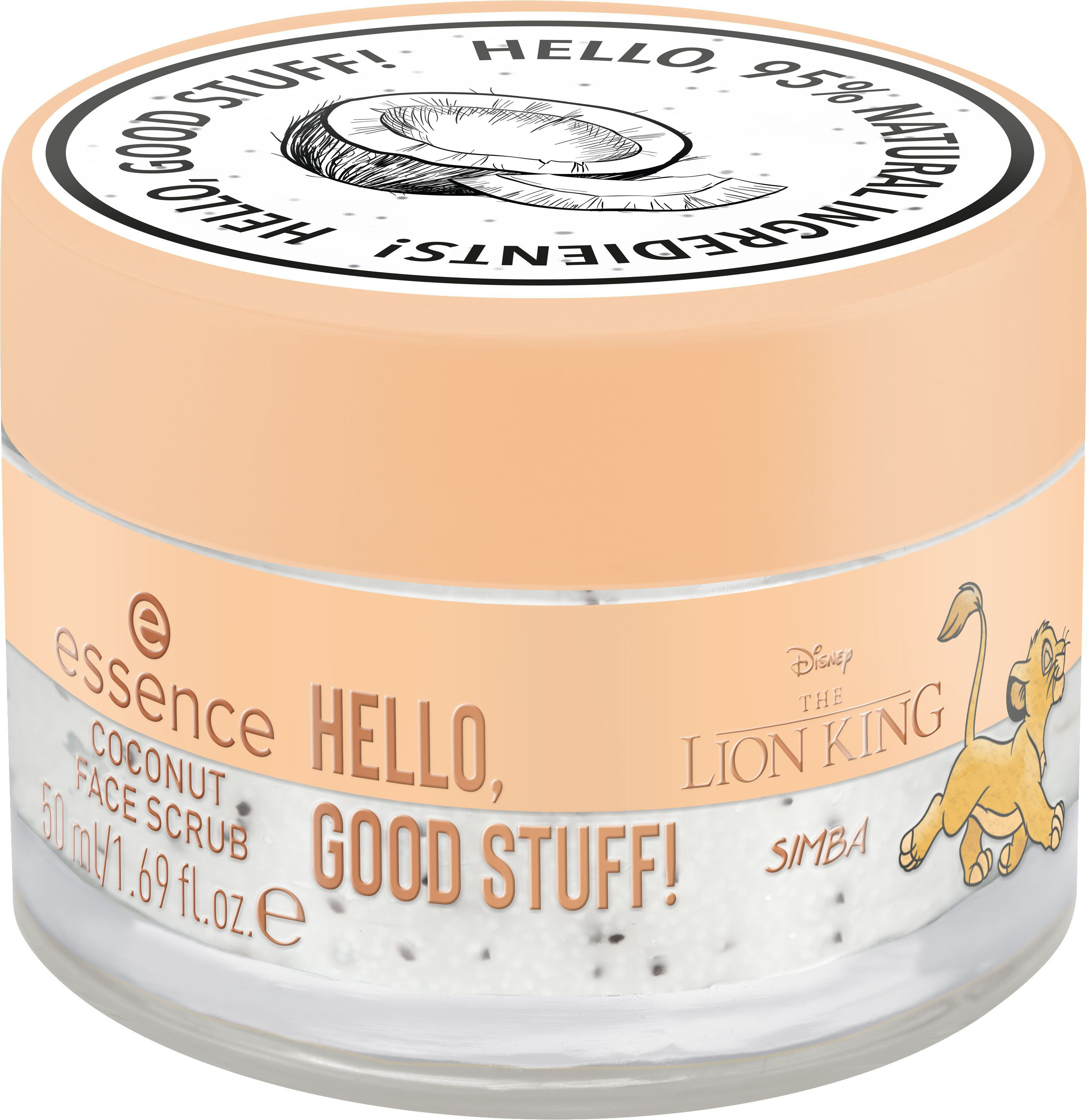 Le gommage visage Coco Disney The Lion King de la gamme Hello, Good Stuff! d’Essence allie naturel et efficacité avec une formule douce enrichie à l’extrait de noix de coco.