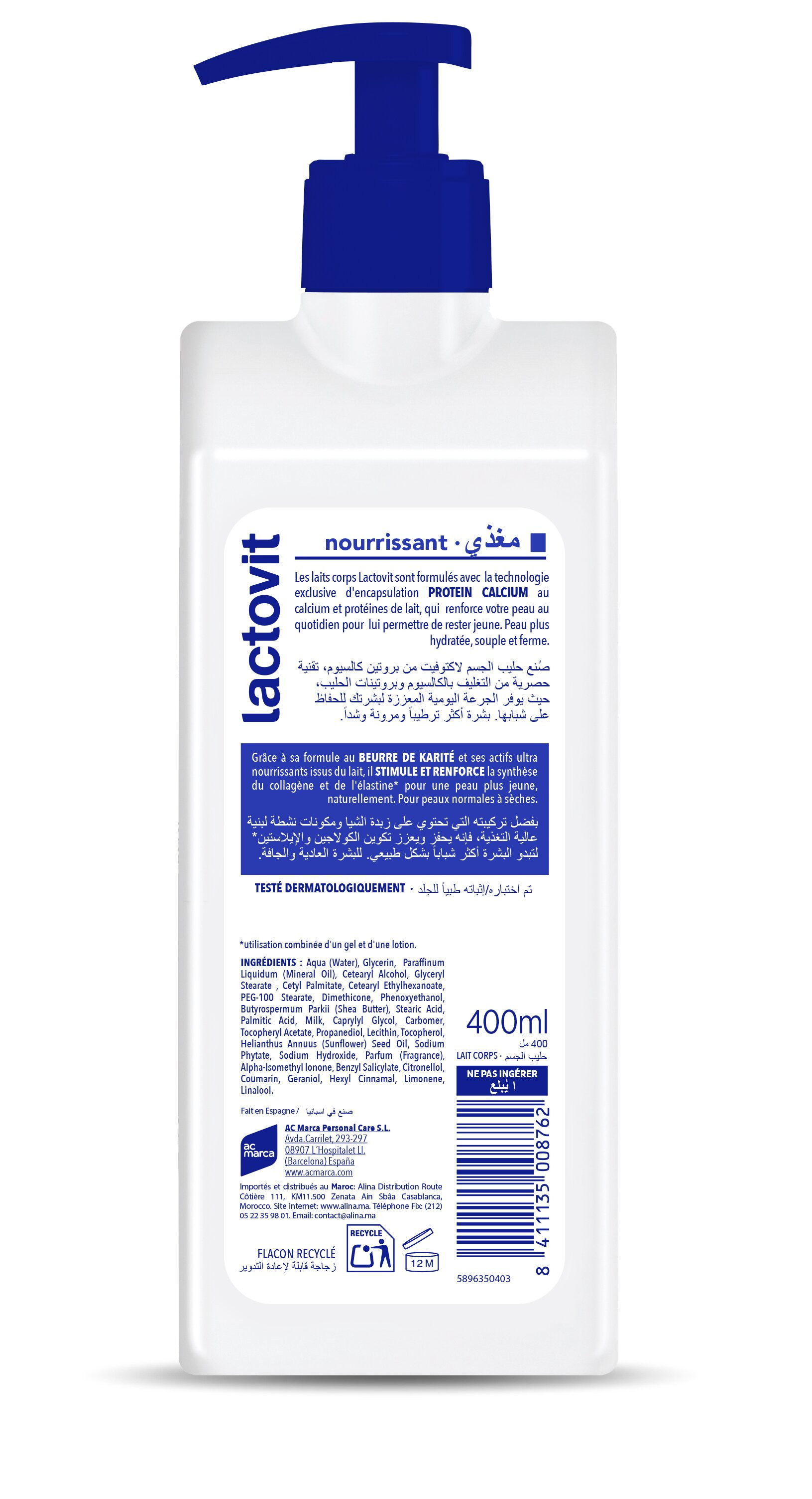 Le lait corporel nourrissant Lactovit offre une hydratation profonde qui dure toute la journée, grâce à sa formule riche en nutriments issus du lait.
