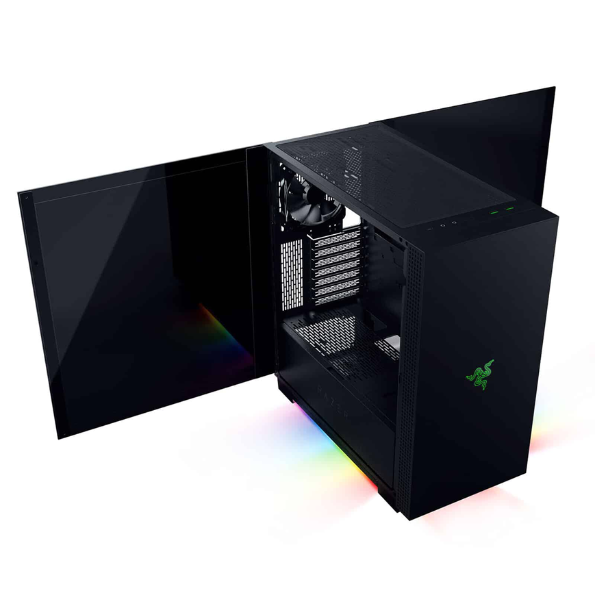 Design élégant avec panneaux en verre trempé et éclairage RGB personnalisable via Razer Chroma™.