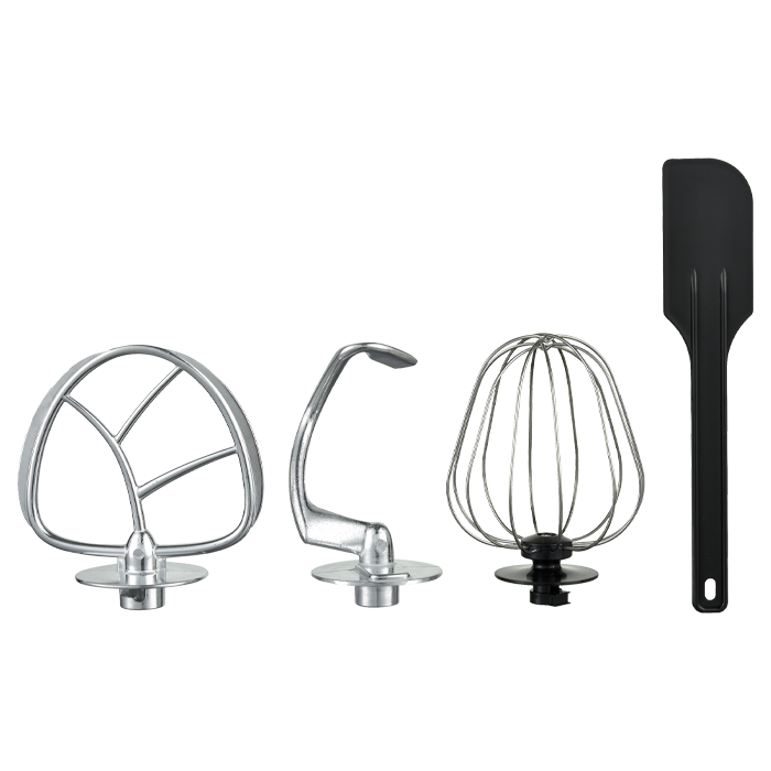 | Accessoires | Fouet, batteur, crochet à pates et couvercle |