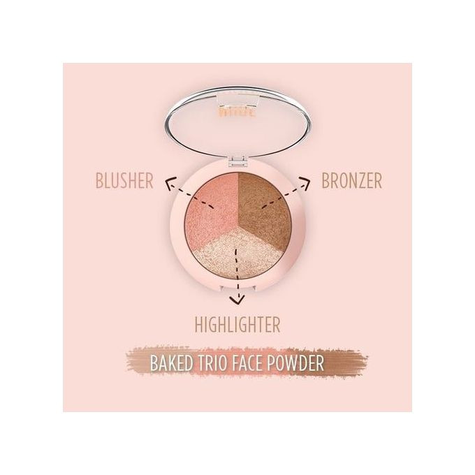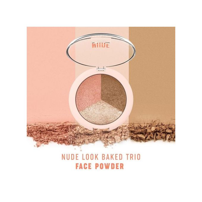 La Poudre Baked Trio Nude Look de Golden Rose réunit trois teintes complémentaires dans un seul boîtier : un blush pour apporter de la fraîcheur au teint, un bronzer pour sculpter et réchauffer, et un enlumineur pour illuminer les zones stratégiques du visage. Sa texture cuite ultra-douce se fond parfaitement à la peau, offrant un fini naturel et lumineux. Convient à tous les types de peau et à un usage quotidien.
