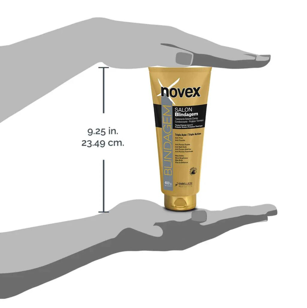Le Protecteur Thermique Blindagem de Novex en format 400 g est un soin capillaire sans rinçage qui agit comme un bouclier protecteur contre la chaleur. Il protège efficacement les cheveux exposés aux agressions thermiques (sèche-cheveux, lisseur, fer à boucler) tout en apportant hydratation, nutrition et brillance. Il aide à prolonger la tenue du lissage, réduit les frisottis et facilite le coiffage. Sa formule exclusive scelle les cuticules et renforce la fibre capillaire, idéale pour les cheveux traités chimiquement, colorés ou sensibilisés.