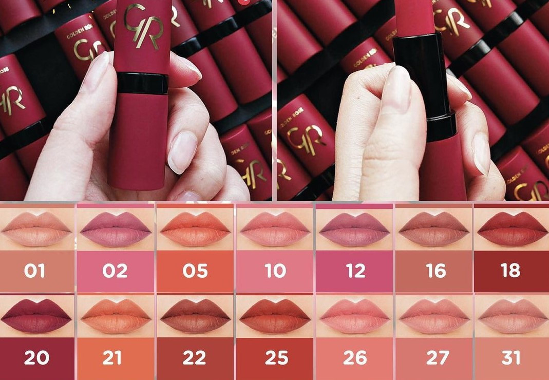Le rouge à lèvres Velvet Matte de Golden Rose allie couleur intense et confort. Grâce à sa texture douce et veloutée, il glisse parfaitement sur les lèvres pour un rendu mat élégant, sans les dessécher. Sa formule est enrichie en vitamine E pour garder les lèvres souples et hydratées tout au long de la journée.