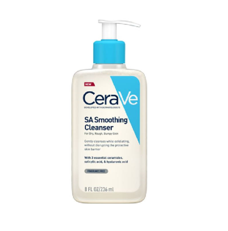 Le SA Nettoyant Lissant de CeraVe nettoie en douceur tout en exfoliant et lissant la peau sans altérer la barrière cutanée. Formulé avec de l’acide salicylique et de l’acide hyaluronique, il élimine les cellules mortes, libère les pores, et réduit les rugosités. Convient aux peaux sèches, rugueuses ou sujettes à la kératose pilaire.